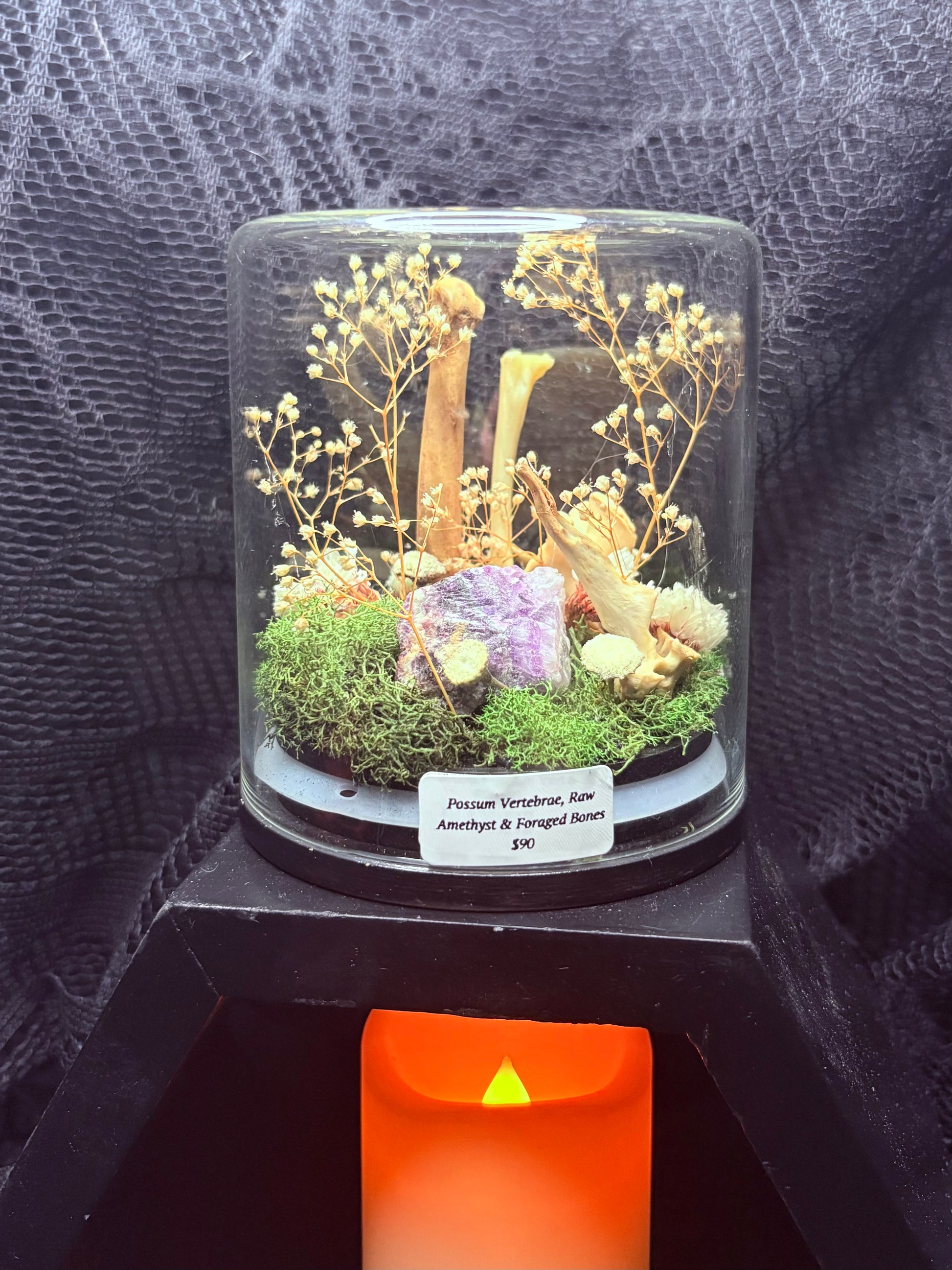 Possum Vertebrae, Amethyst, and Foraged Bones